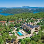Set at the entrance to the picturesque Krka National Park, Hotel Vrata Krke is a 4-star hotel renowned within the Ložovac hotels for its serene ambiance and rustic charm. Designed in the style of a wooden Alpine lodge, the property is enveloped by unspoiled nature, making it a perfect getaway for both leisure and adventure. Guests can enjoy a range of amenities, including a seasonal pool, a full-service spa, and dining options focusing on locally inspired dishes.